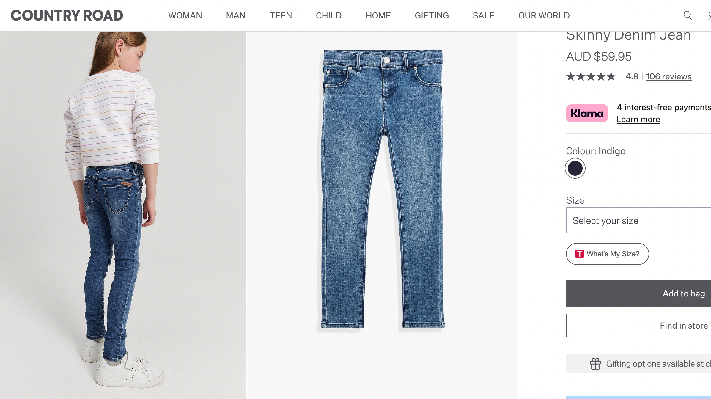 Our jeans are made from a comfort stretch denim that's perfect for play. This one features a skinny leg and standard five pocket styling.