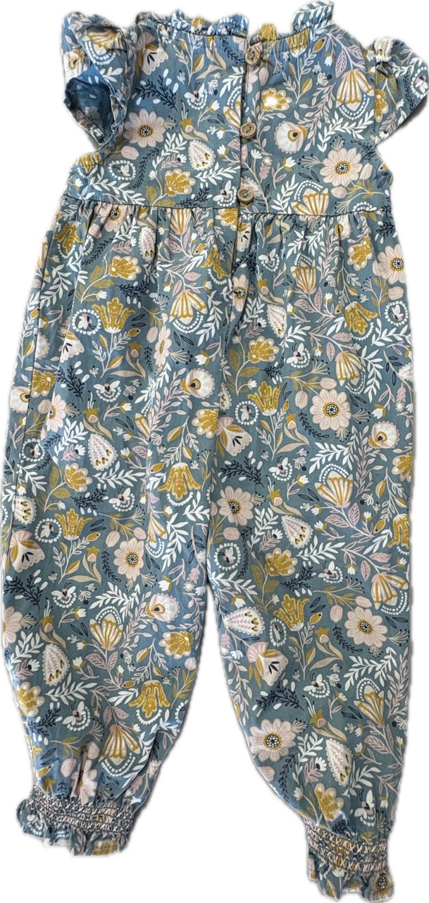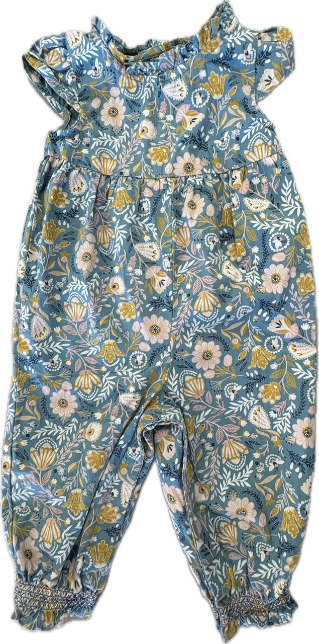 Emma's Garden, Girls Pink/Copper Floral Flutter Sleeve Romper, EUC, Size 0 (6-12m)