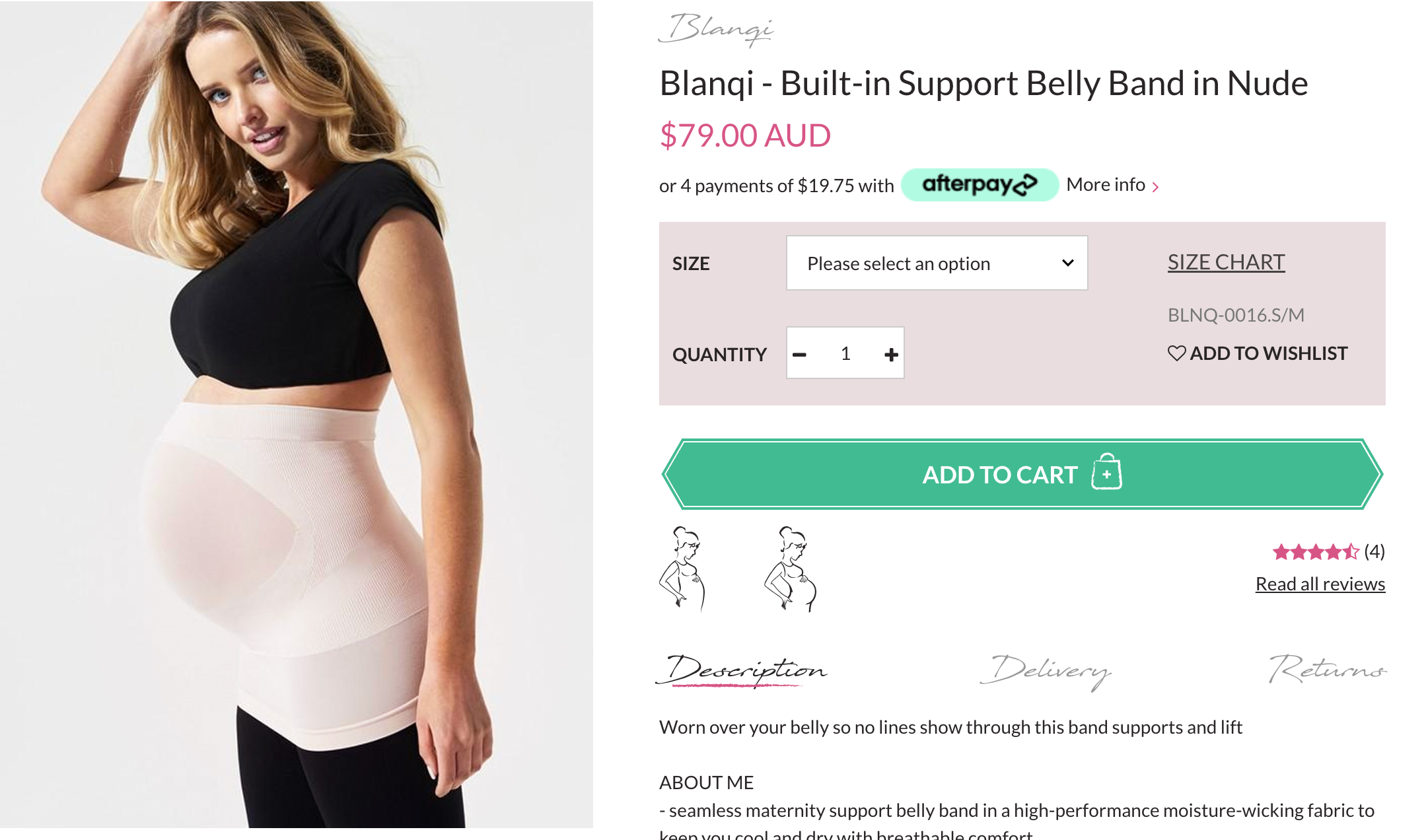 BLANQI, Everyday Maternity Built-in Support BellyBand Pale Nude, GUC, Size S/M