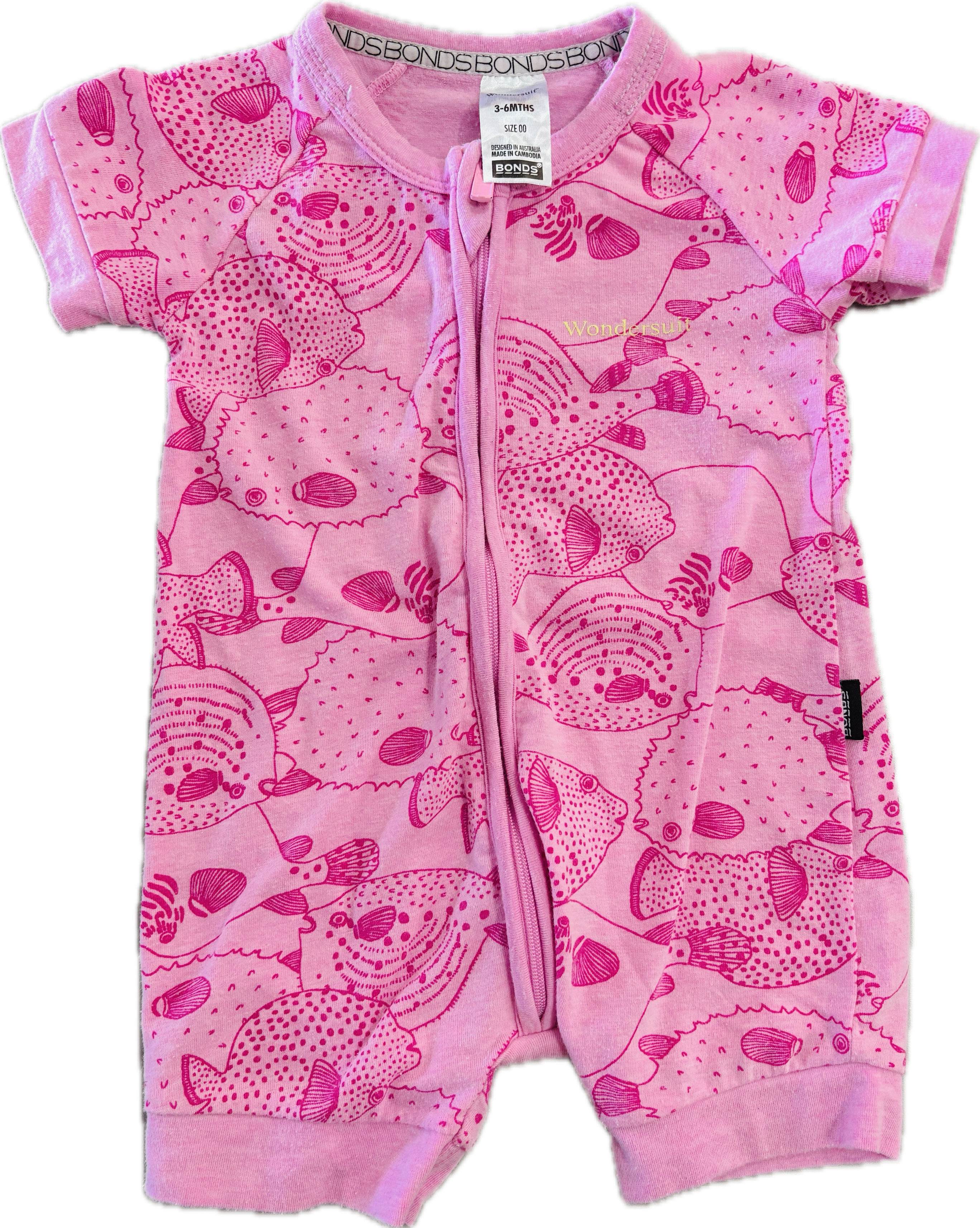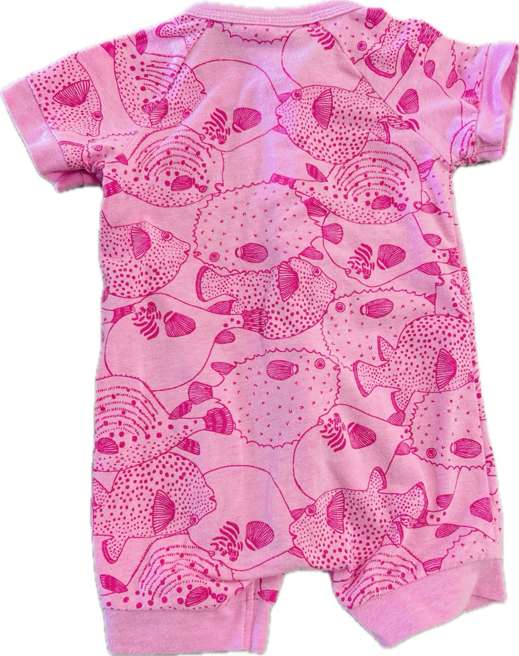 Bonds, Pink Puffer Fish Romper Wondersuit, GUC, Size 00 (3-6m)