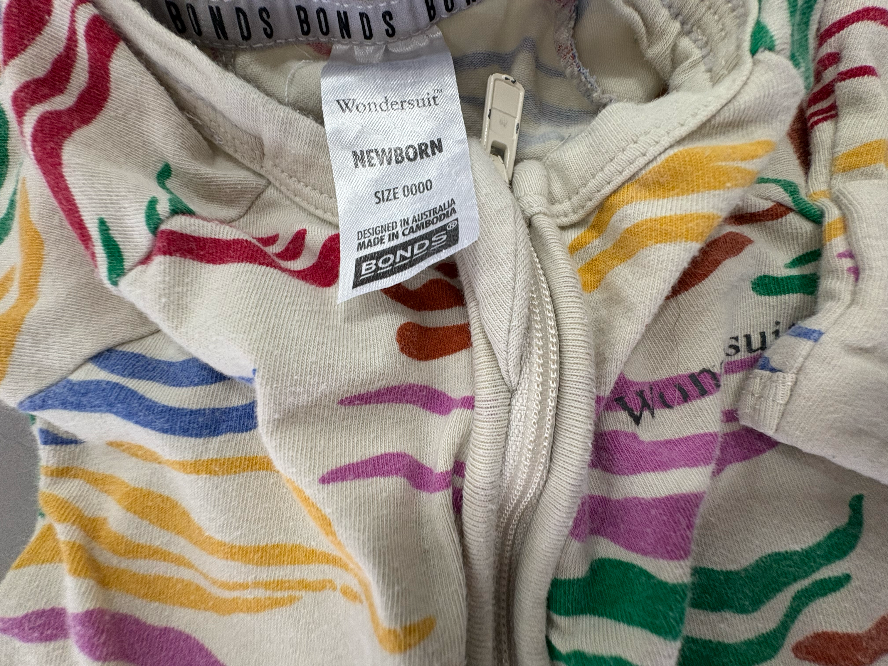 Bonds, Zebra Coloured Wondersuit, GUC, Size 0000 (Newborn)