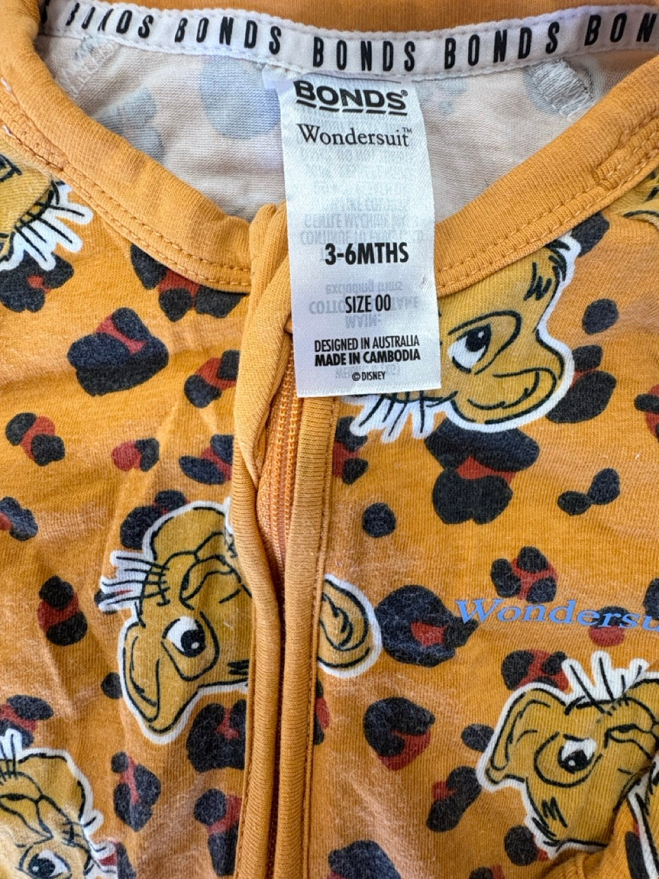 Bonds, Lion King Wondersuit, GUC, Size 00 (3-6m)