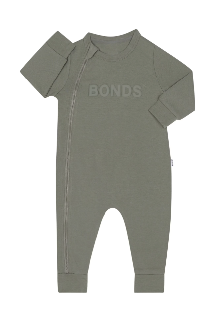 Bonds, Tech Sweats Zip Wondersuit in Olive, EUC, Size 0 (6-12m)