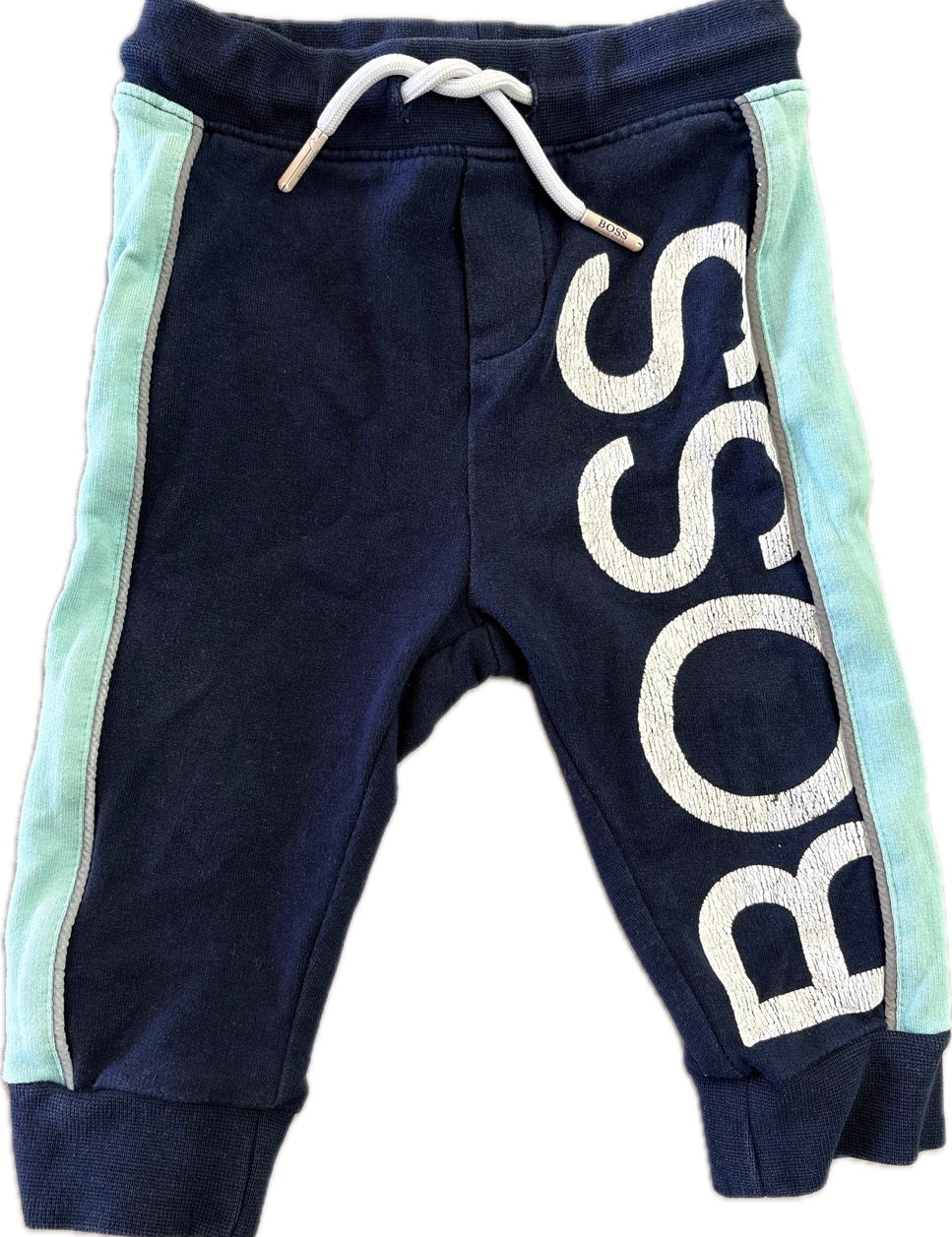 BOSS, Younger Boys White & Blue Logo Joggers, GUC, Size 0 (9m)