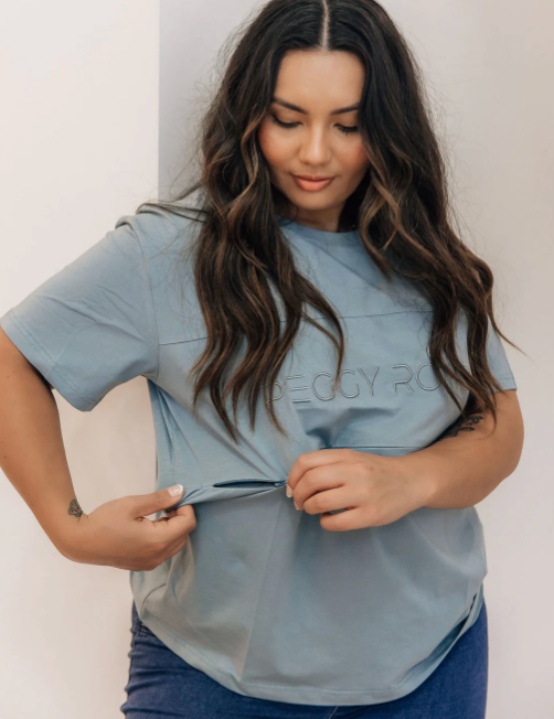 Peggy Road, Duck Egg Blue Signature Breastfeeding Tee, EUC, Maternity Size M