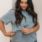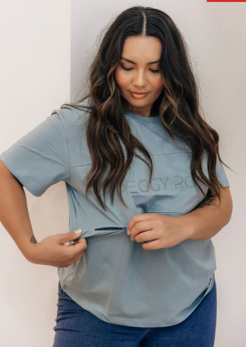 Feel comfortable, while looking casually stylish and feed your little one with ease in our Duck Egg Blue Panel Breastfeeding T-Shirt.