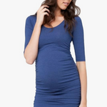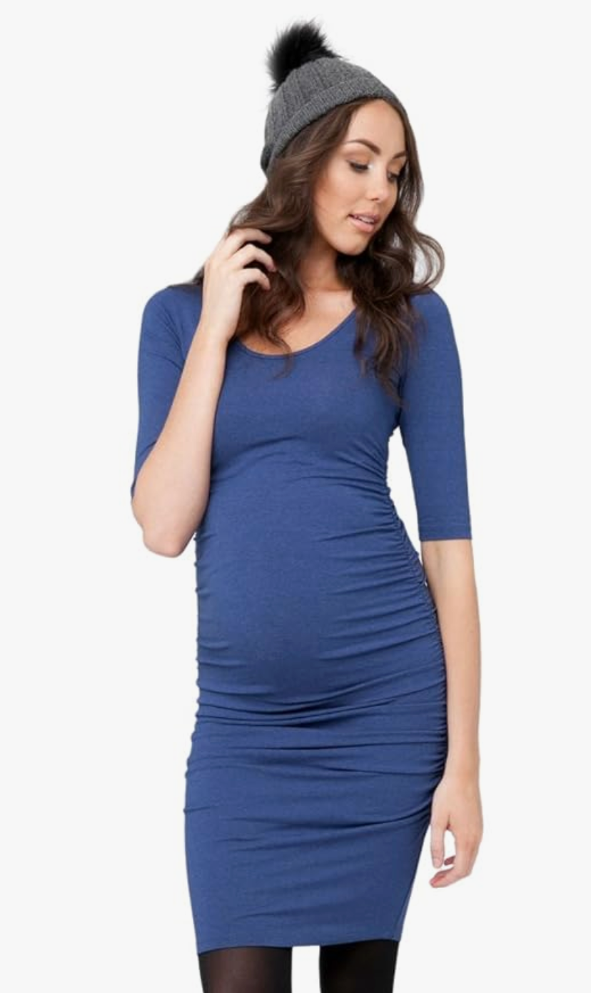 Our Cocoon Elbow Sleeve Dress; a wardrobe staple that we recommend getting early in your pregnancy to avoid those 'nothing fits me' meltdowns. The side seam ruching will provide the perfect fit through each stage and the clean silhouette makes this dress ultra versatile.