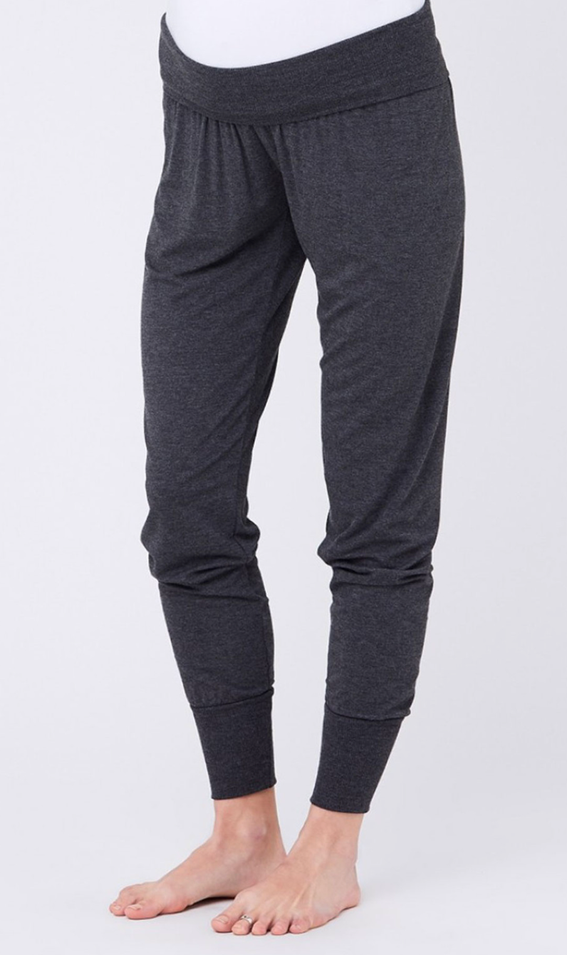 Lounge around in the super comfy, Ripe Maternity Jersey Lounge Pant. Featuring a soft, rib knit, fold-over waistband, slight drop crotch and cuffed hems. You’ll love lounging around in these extremely soft and comfy pants throughout your pregnancy and beyond.