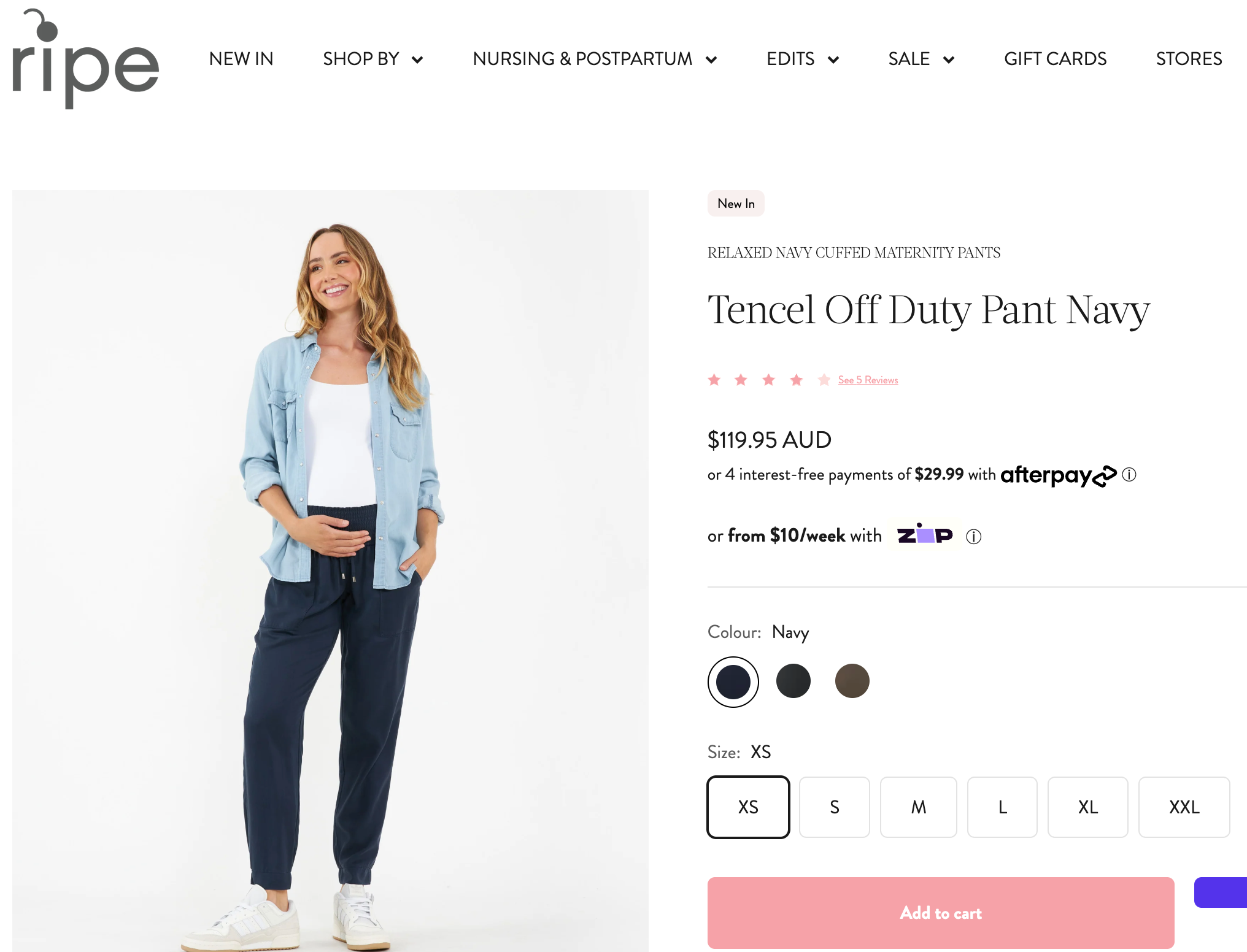 Ripe, RELAXED NAVY CUFFED MATERNITY PANTS Tencel Off Duty Pant Navy, GUC, Size M
