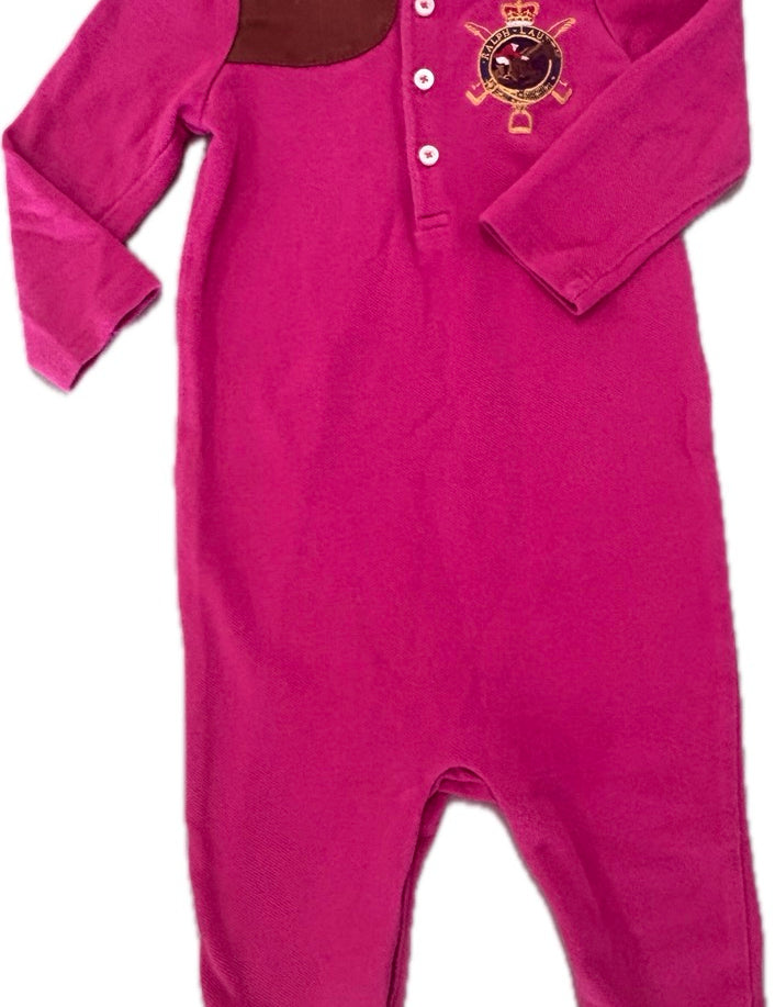 Ralph Lauren, Baby Coverall Suede Detail Big Logo Magenta Pink Girls, EUC, Size 0 (9m)