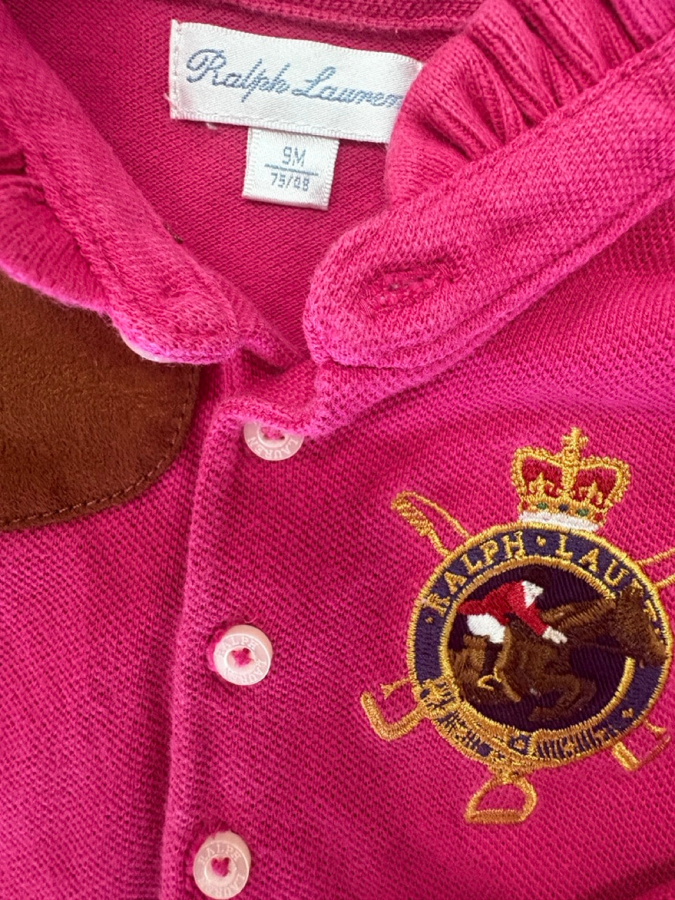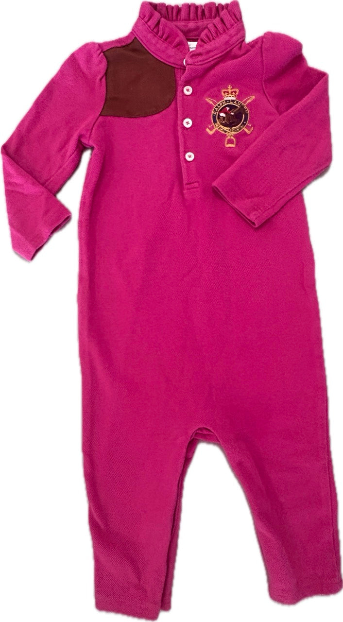 Ralph Lauren, Baby Coverall Suede Detail Big Logo Magenta Pink Girls, EUC, Size 0 (9m)
