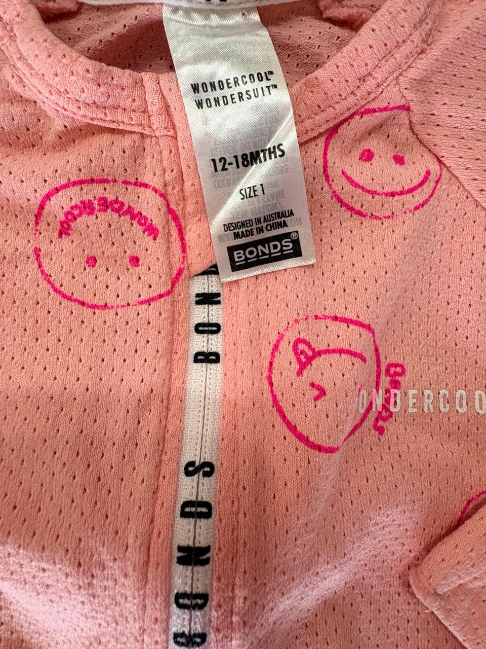 Bonds, Pink Happy Face Wondercool Suit, EUC, Size 1