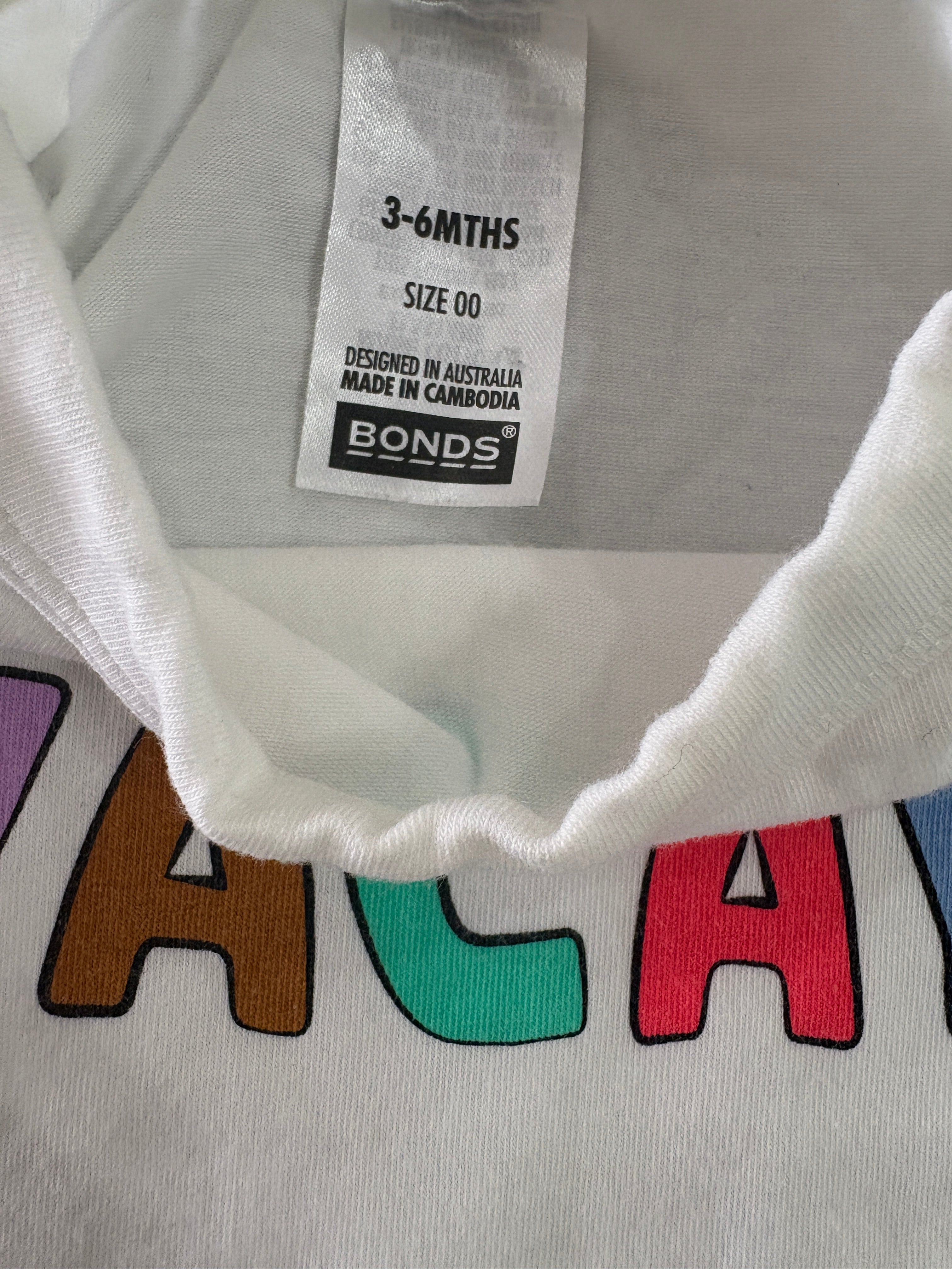 Bonds, Roomies Short Sleeve Bodysuit Vacay, GUC, Size 00 (3-6m)