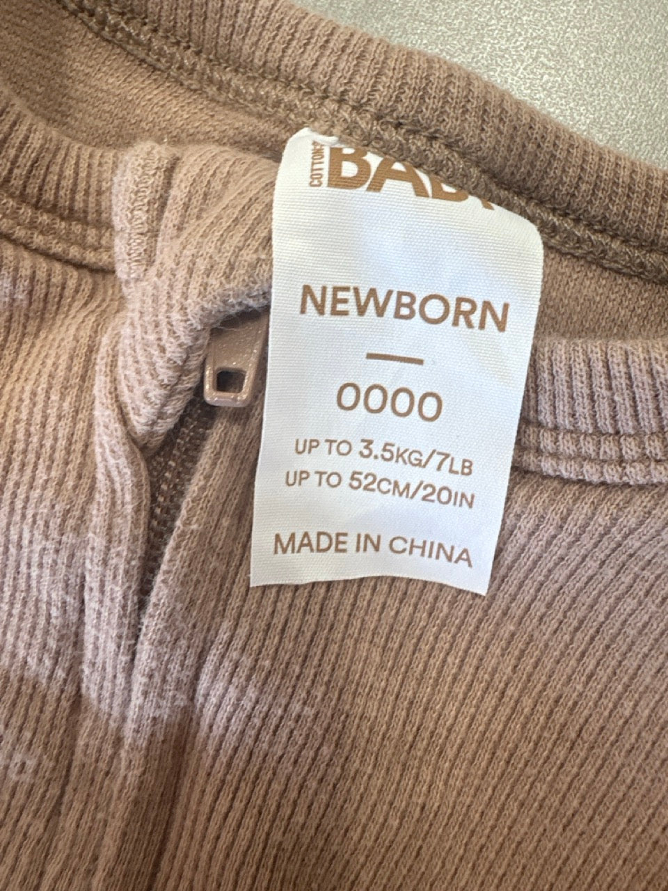 Cotton On Baby, Tan Ribbed Baby Romper, GUC, Size 0000 (Newborn)
