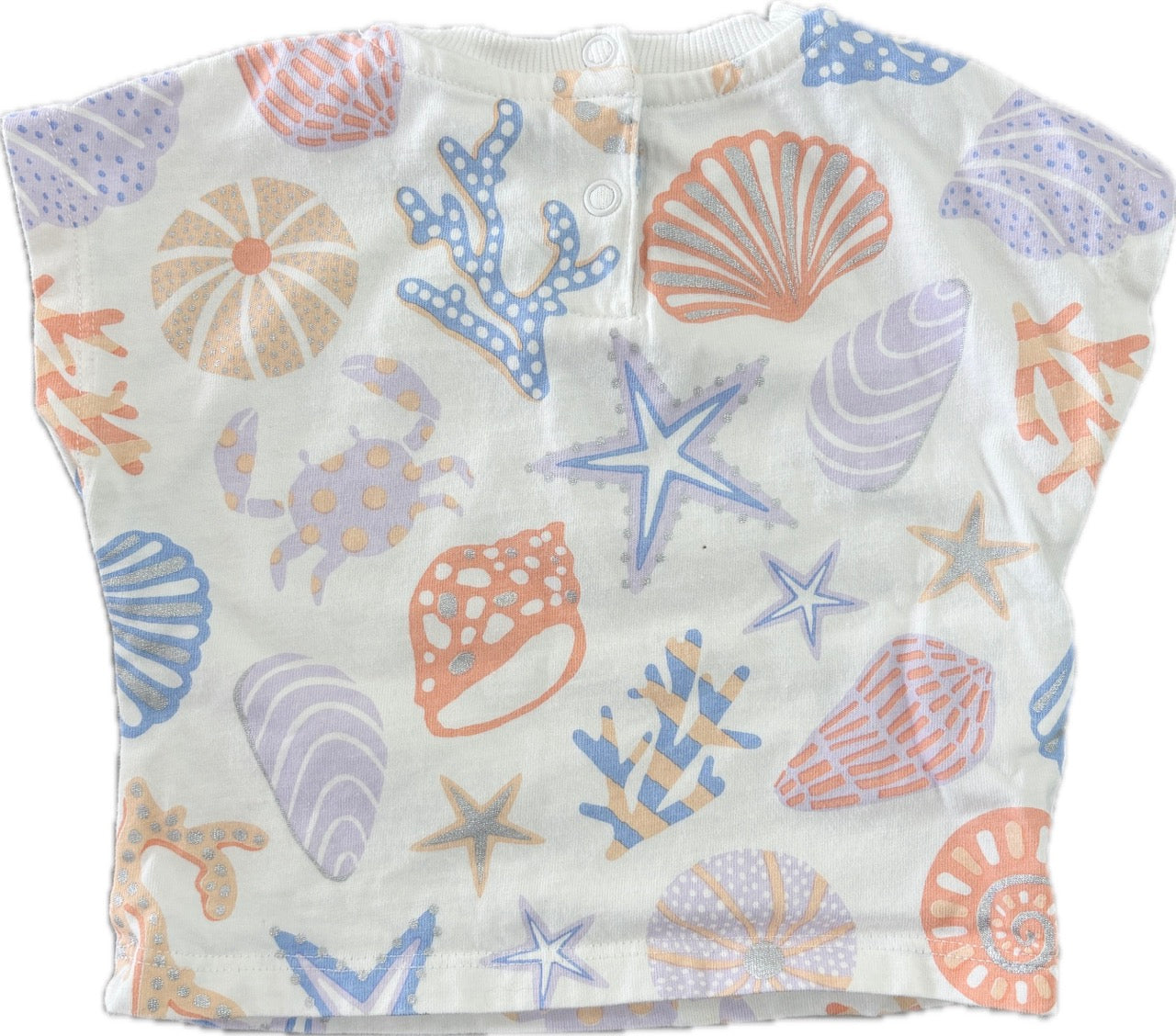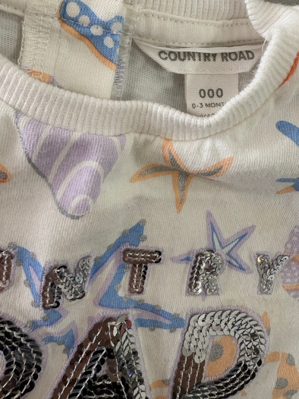 Country Road, Gots-certified Organic Sequin Logo T-shirt in Seaside Marsh, EUC, Size 000 (0-3m)