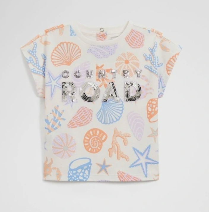 A favourite for all ages, made using soft organic cotton. Cut in a regular fit, this crew neck tee features a sequinned Country Road logo at the chest.