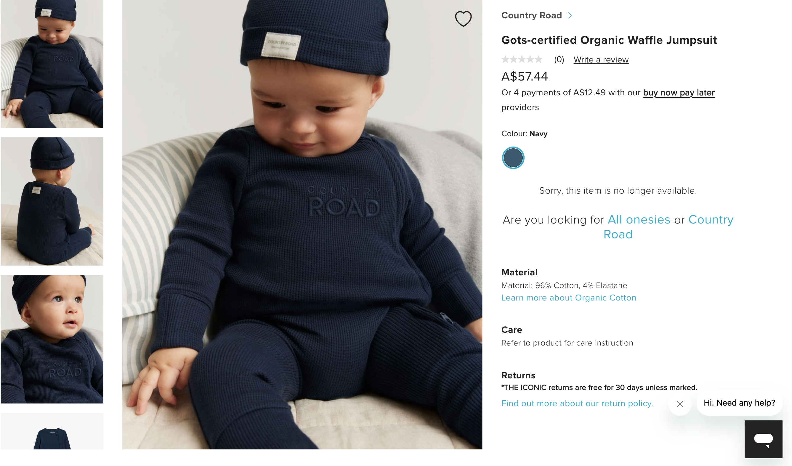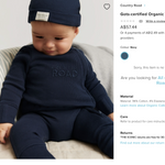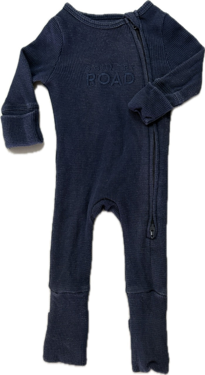 Country Road, Organically Grown Cotton Waffle Jumpsuit Navy, EUC, Size 0000 (Newborn) (Copy)