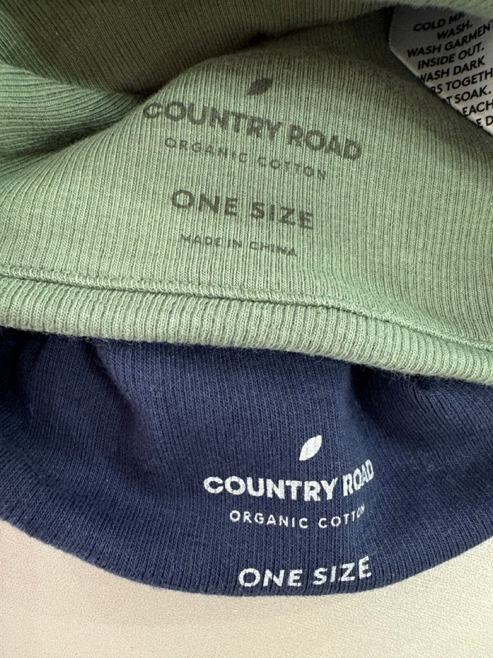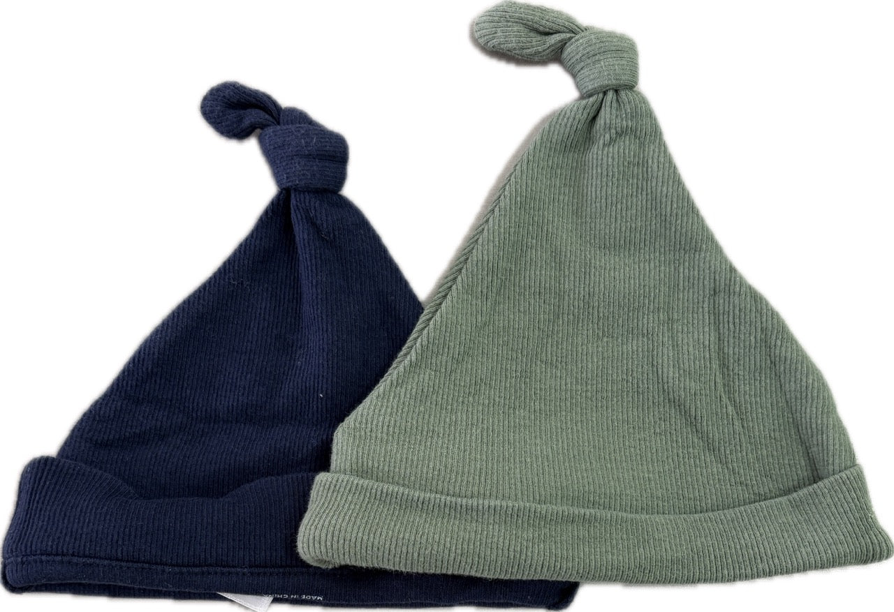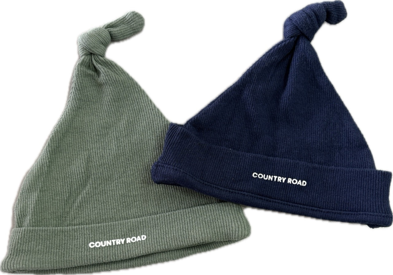 Country Road, Unisex Organically Grown Cotton Rib Beanies Set of 2, EUC, Size Onesize (Newborn)