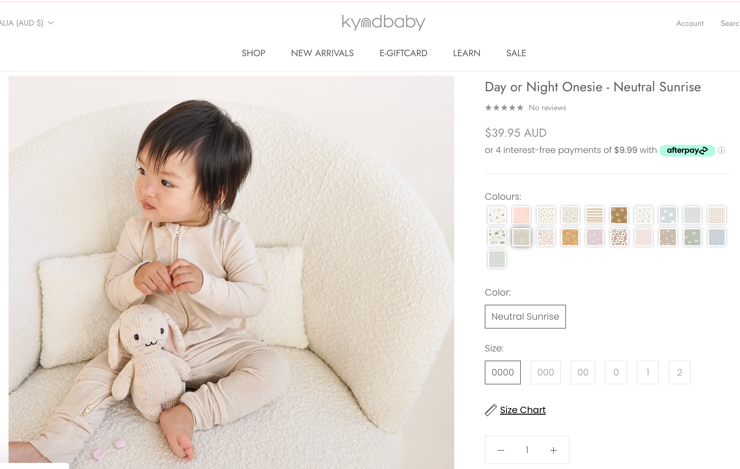 Kynd Baby, Day or Night Onesie - Neutral Sunrise, EUC, Size 000 (0-3m)