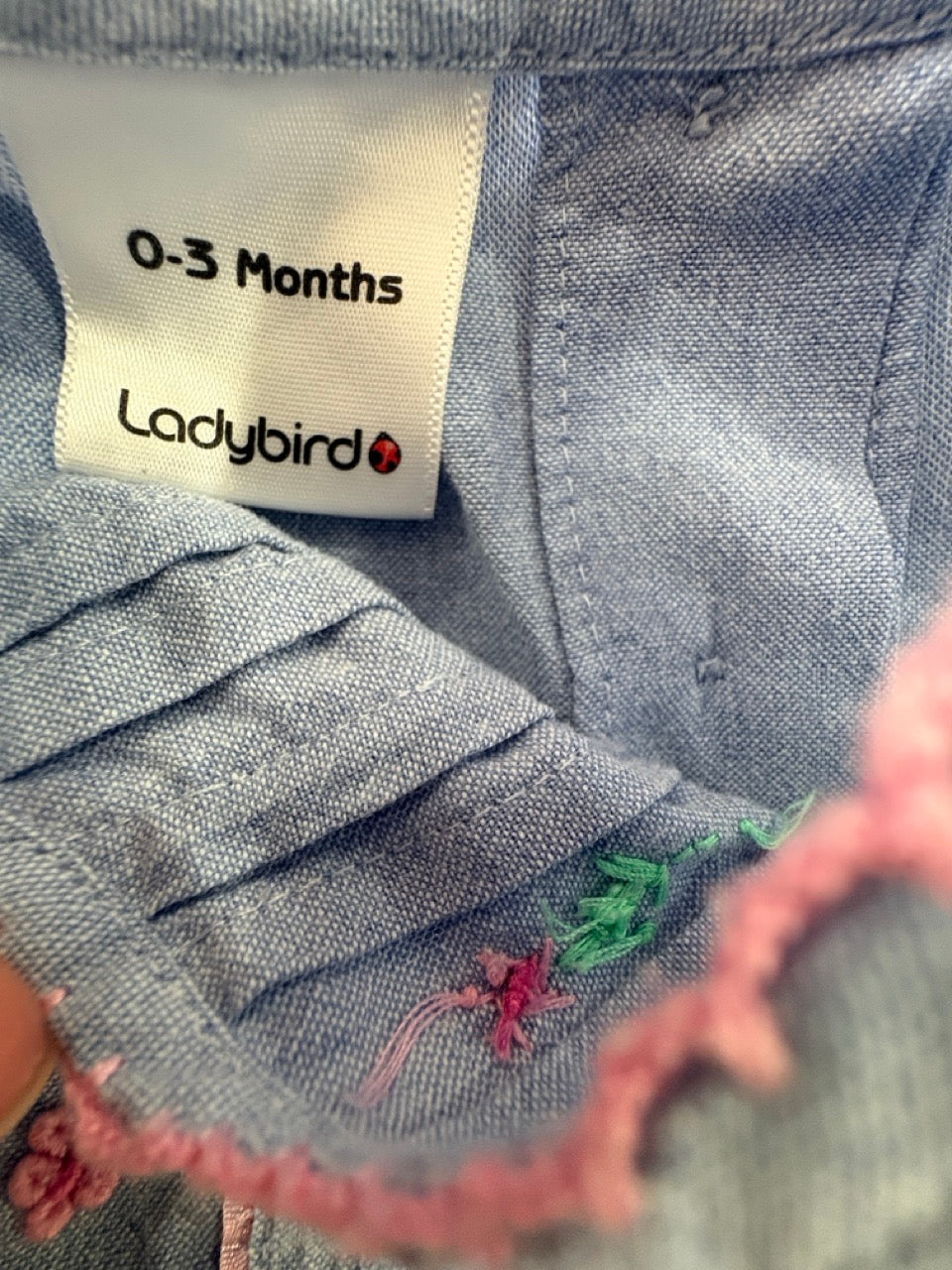 Ladybird, Baby Girl Embriod Dress, EUC, Size 000 (0-3m)