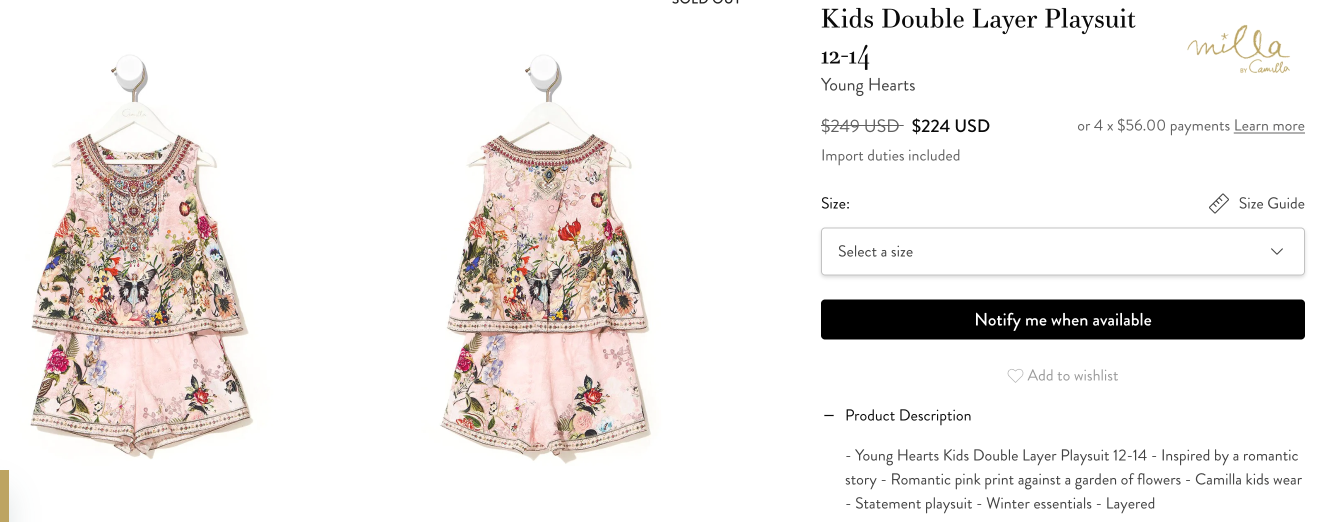 Milla by Camilla, kids double layer playsuit Young hearts, EUC, Size 10