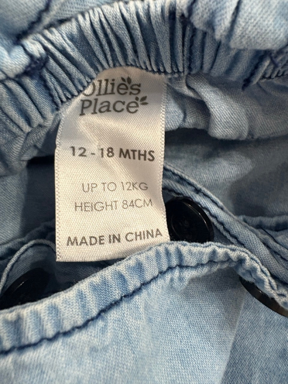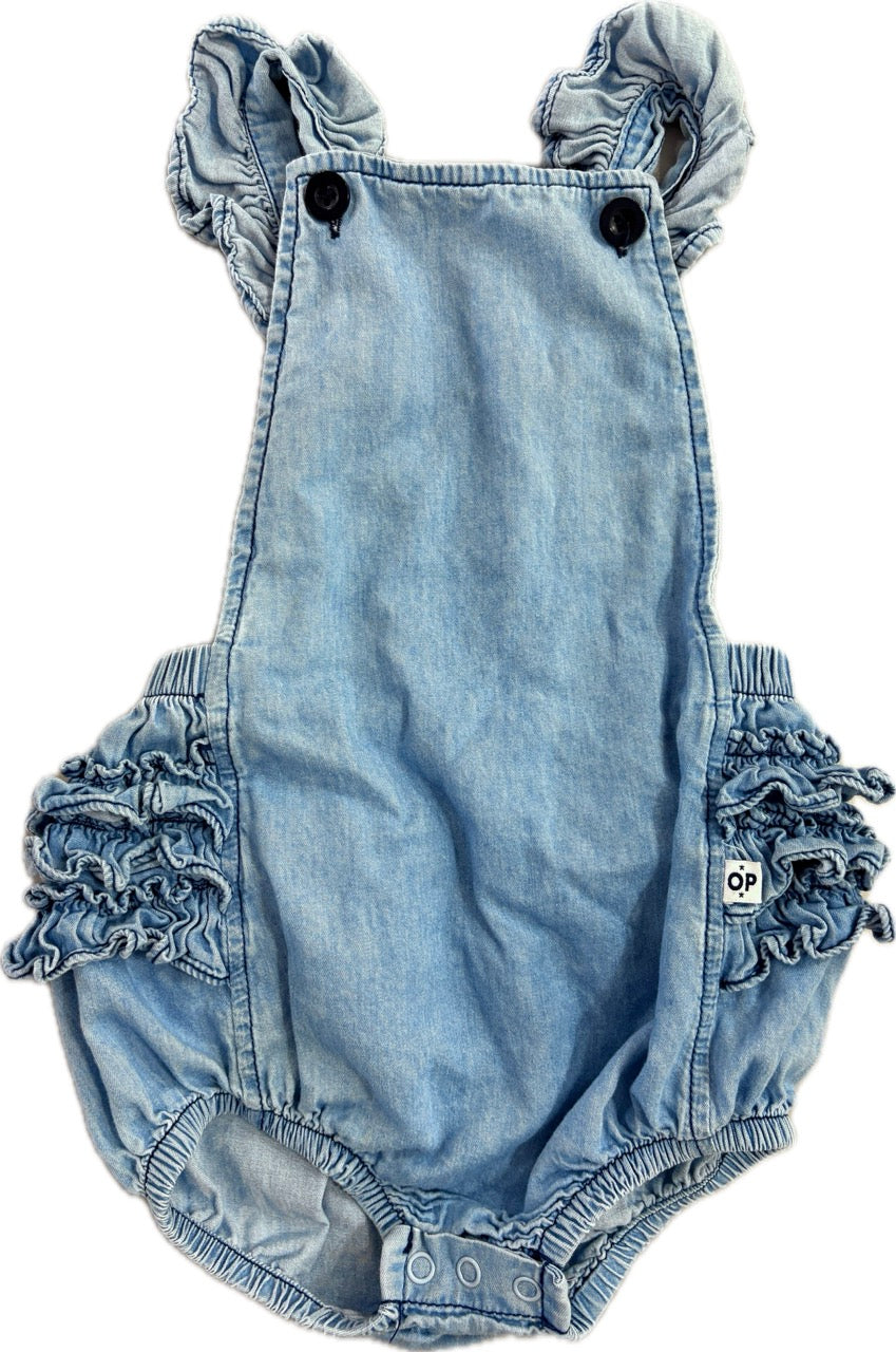 Ollie's Place, Baby Girls Denim Sunsuit Romper, EUC, Size 1 (12-18m)