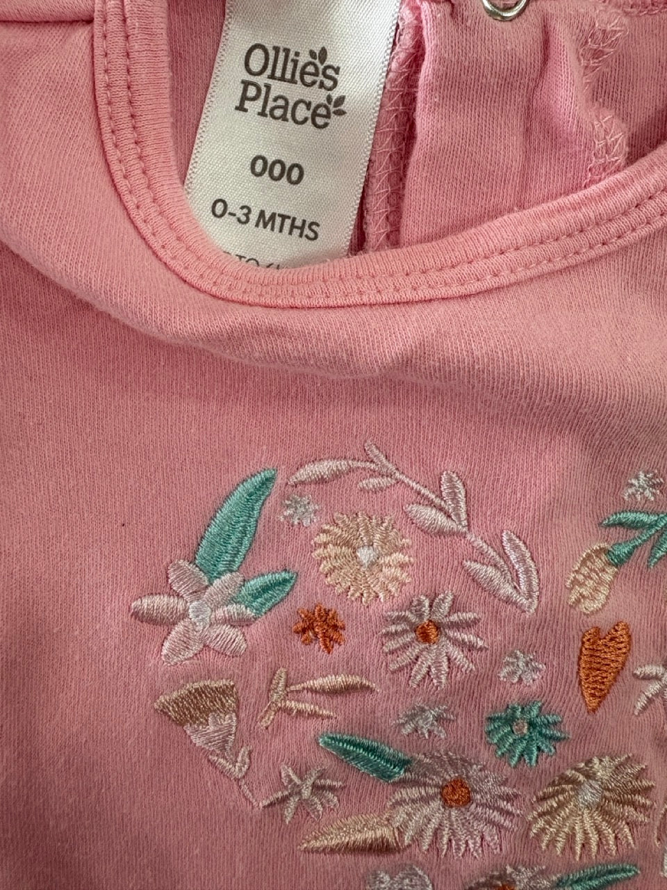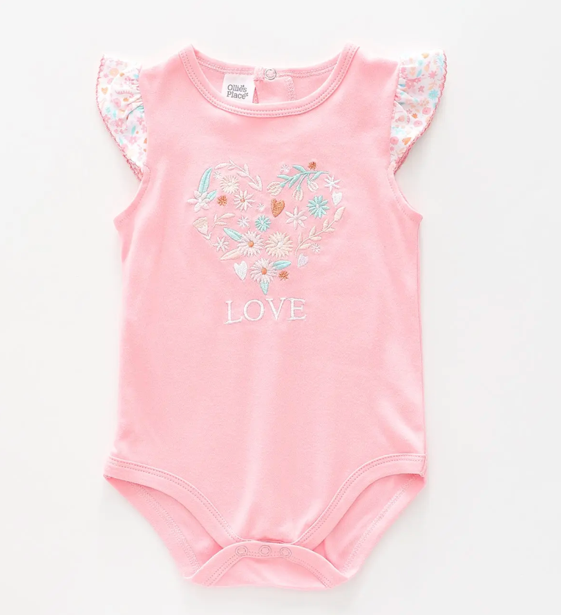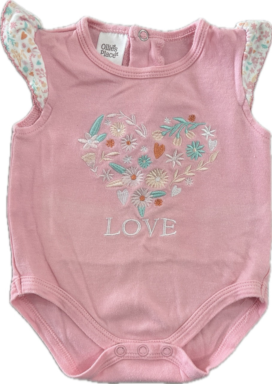 Ollie's Place, Baby Girls Pink Love Bodysuit, EUC, Size 000 (0-3m)