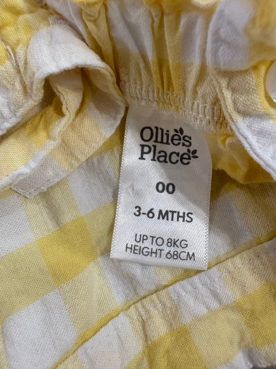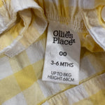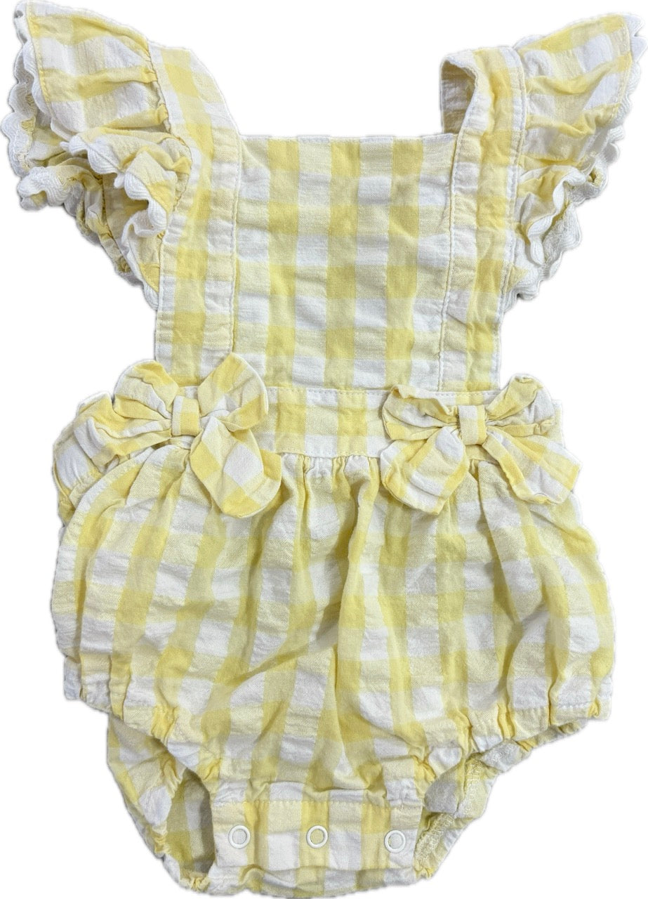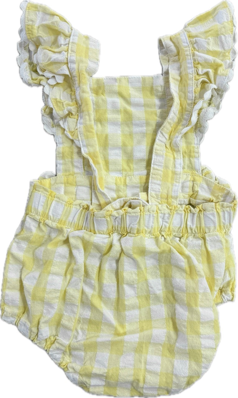 Ollie's Place, Baby Girls Yellow Gingham Sunsuit Romper, EUC, 00 (3-6m)