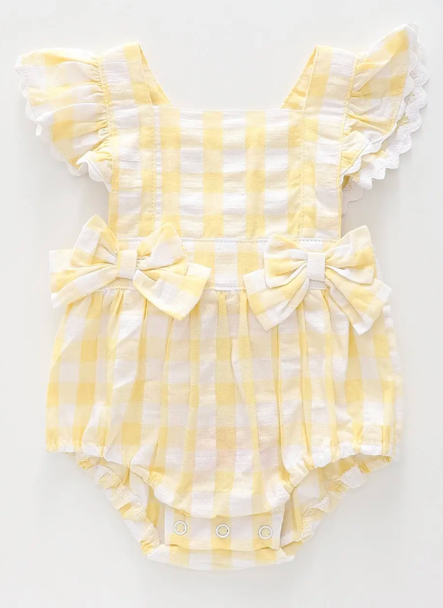 Featuring a fun design, our Yellow Gingham Sunsuit Romper gives your little one uninterrupted body movement while looking exceptionally cute.