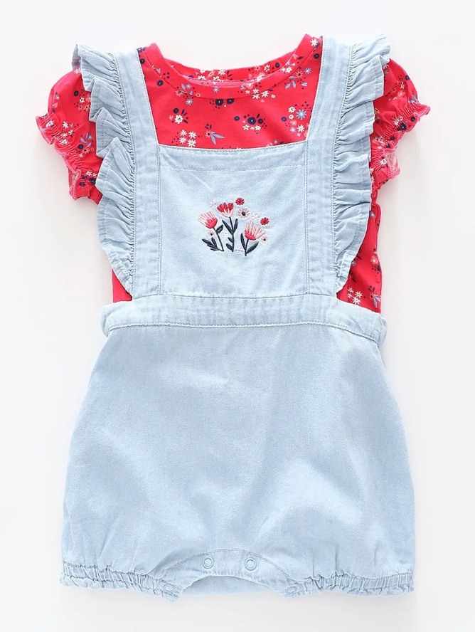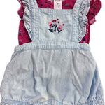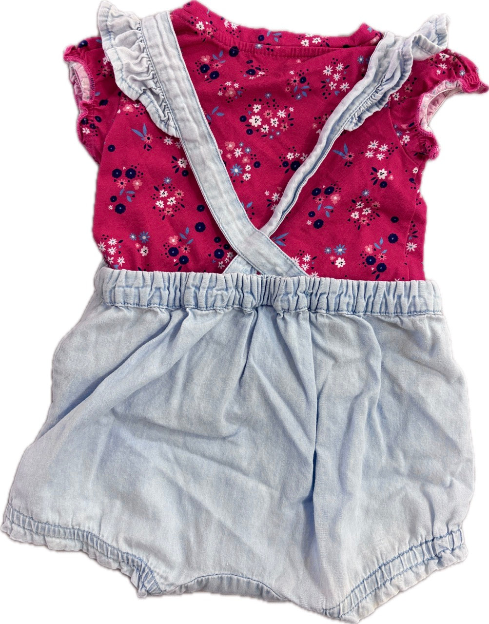 Ollie's Place, Hot Pink Floral and Light Denim Romper Sunsuit Set, GFUC*, Size 00 (3-6m)