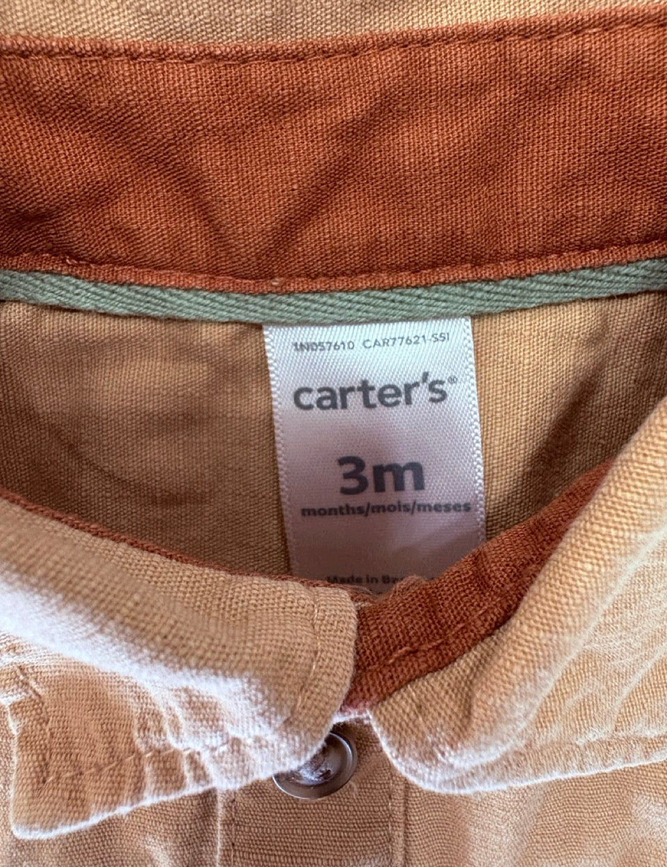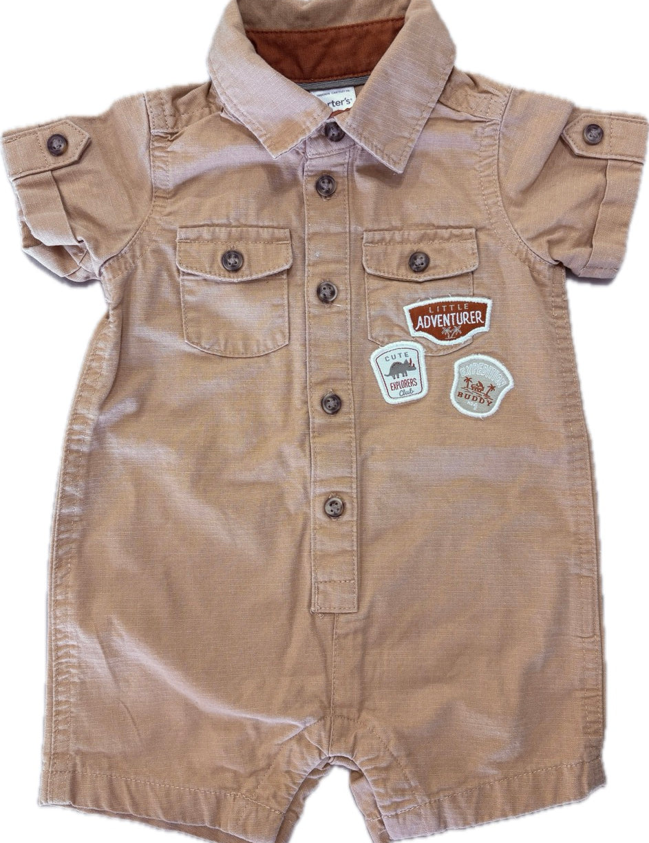 Carters, Kids' Baby Boys Poplin Romper In Khaki, EUC, Size 00 (3-6m)