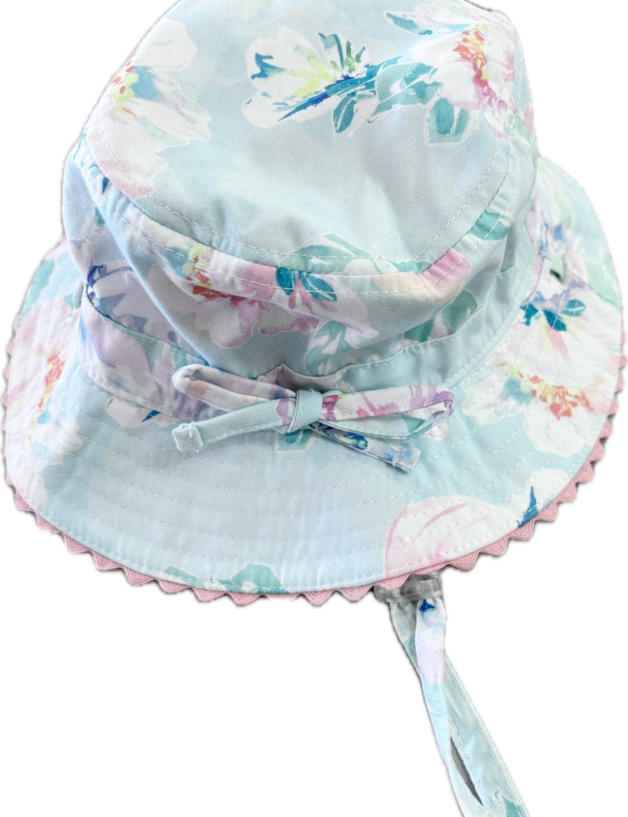 Millymook, Baby Girls Bucket Hat - Mint Floral Print - Blush, EUC, Size 1-2