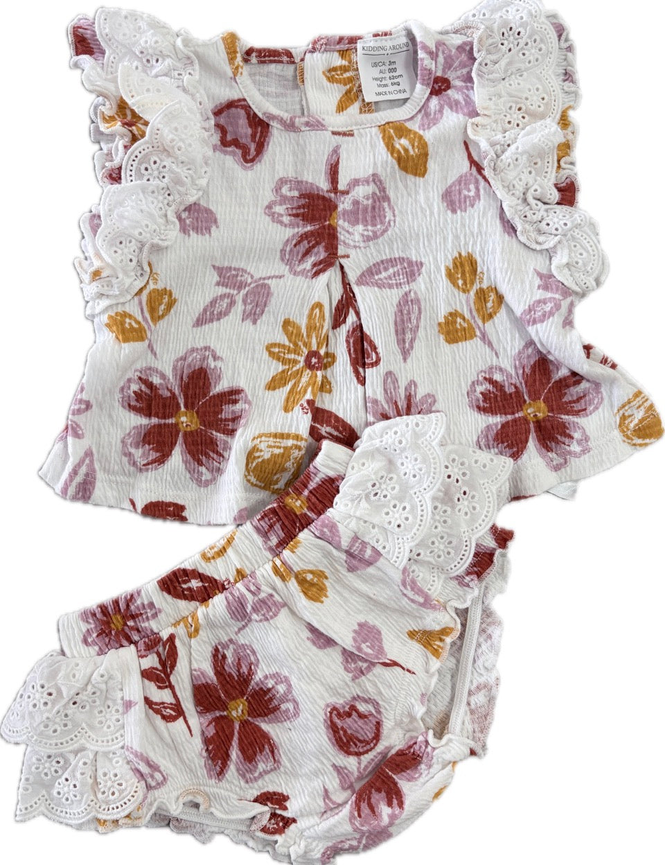 Kidding Around, Top/Bloomer Floral Set, EUC, Size 000 (0-3m)