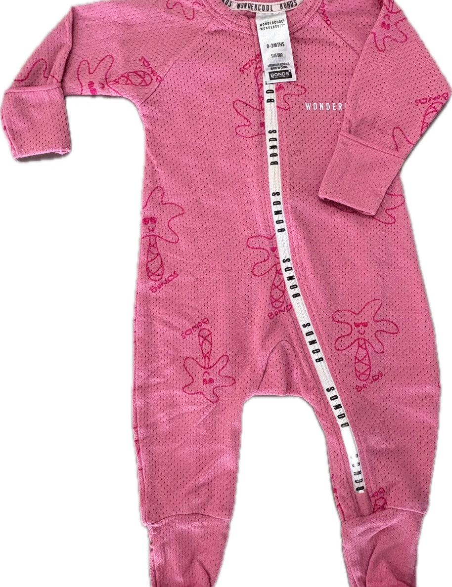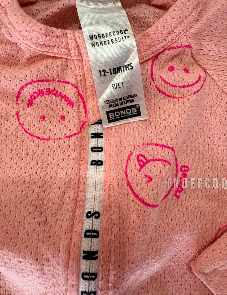 Bonds, Pink Happy Face Wondercool Suit, EUC, Size 1