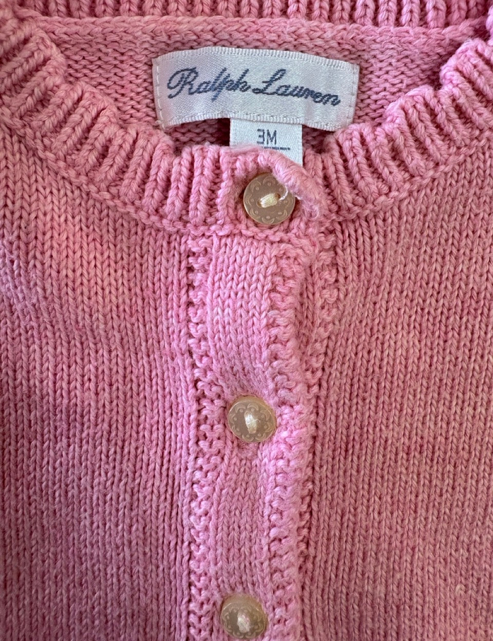 Ralph Lauren, Baby Pink Cardi, EUC, Size 00 (3-6m)