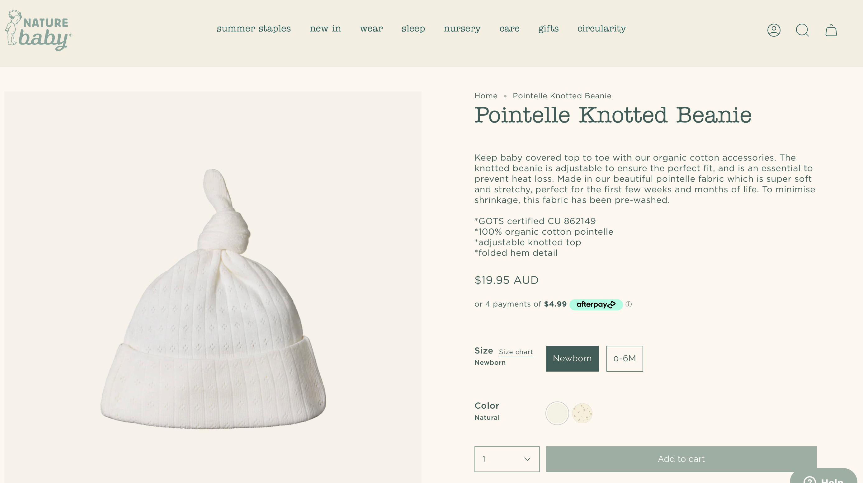 Nature Baby, Pointelle Knotted Beanie, EUC, Size Newborn