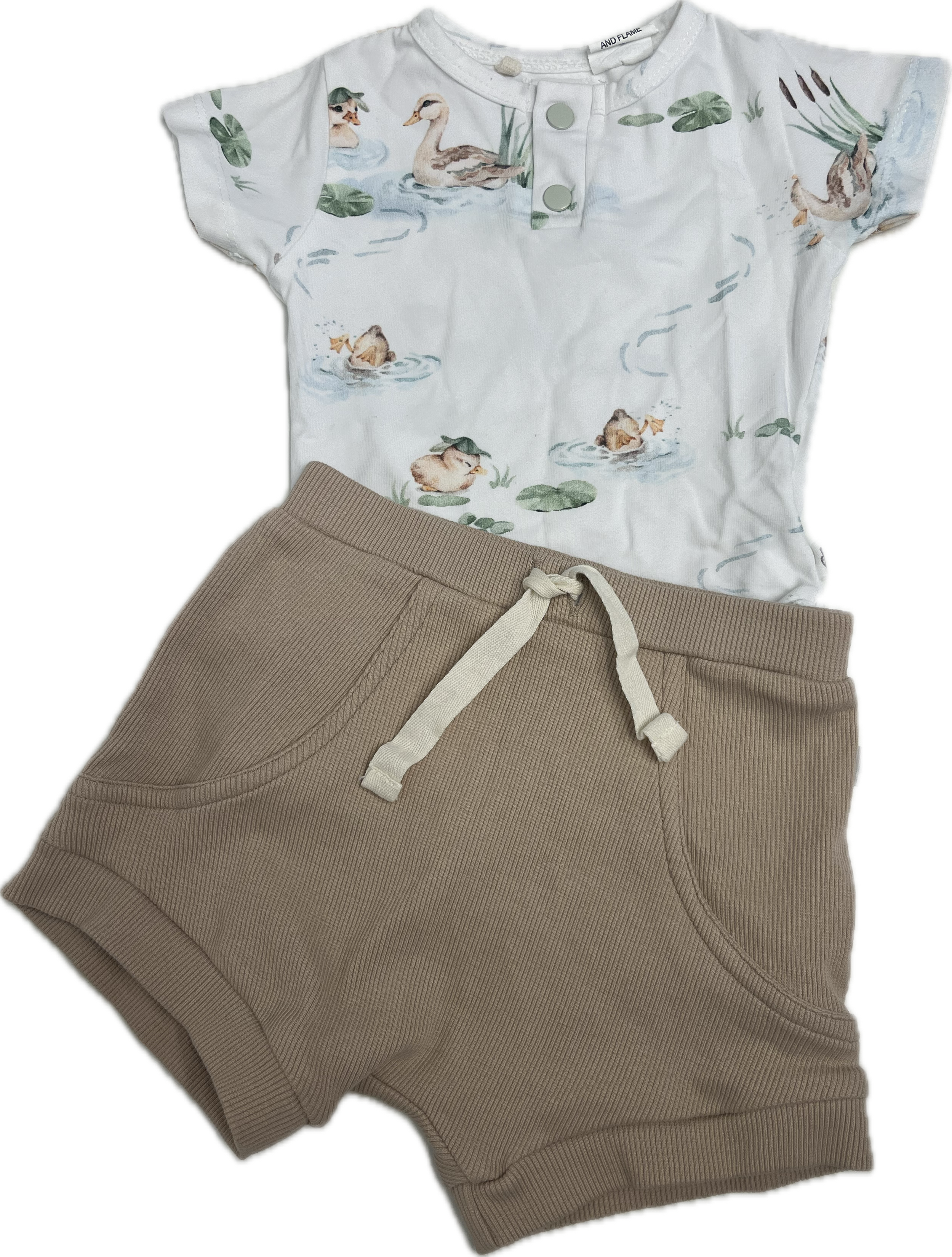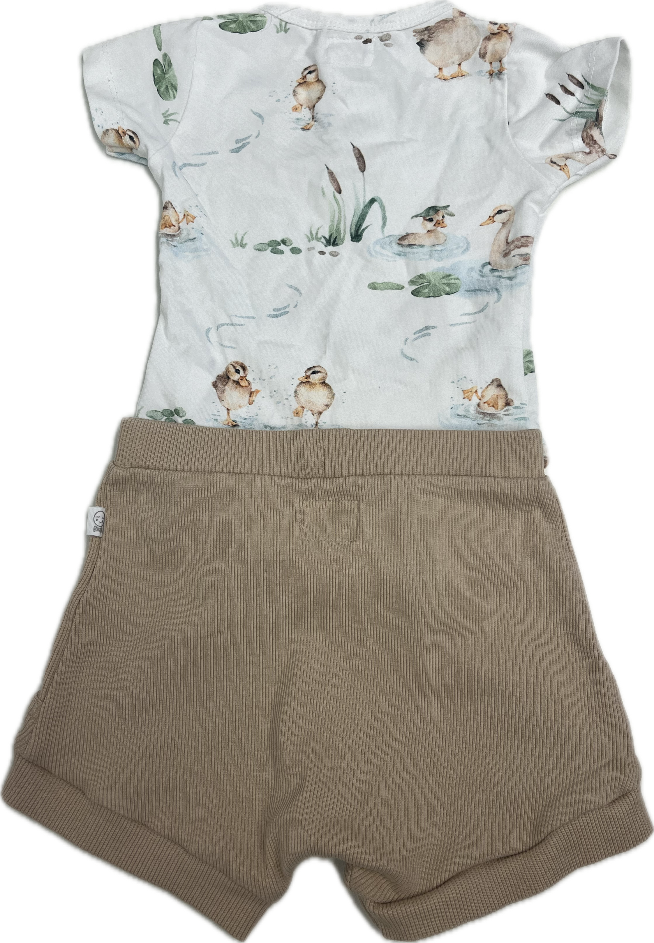 Snuggle Hunny, 2-Piece Set, Ducky Organic Bodysuit/Short Set, EUC, Size 00 (3-6m)