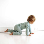 This design includes a long, hidden zipper from ankle to ankle, inside the leg. This means bub’s body can stay warm while their nappy is being changed, with simple, easy access. It also means these growsuits are as easy as a T Shirt to put on bub!