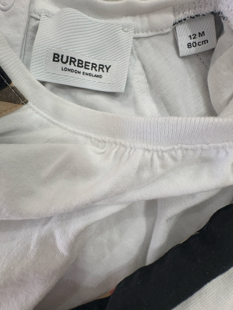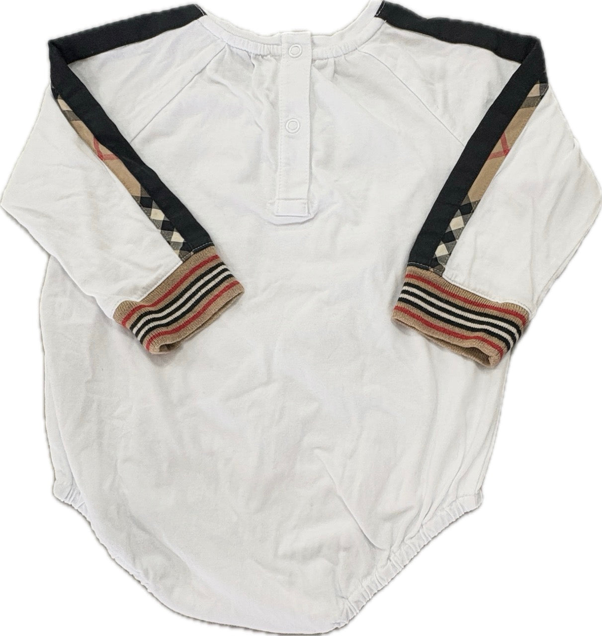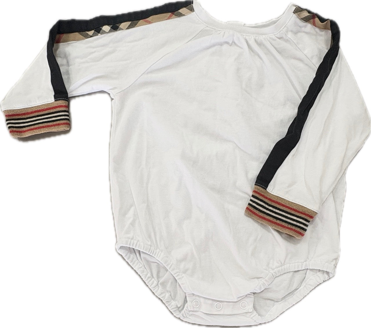 Burberry, Baby White Vintage Check Trim Bodysuit, GUC, Size 1 (12m)