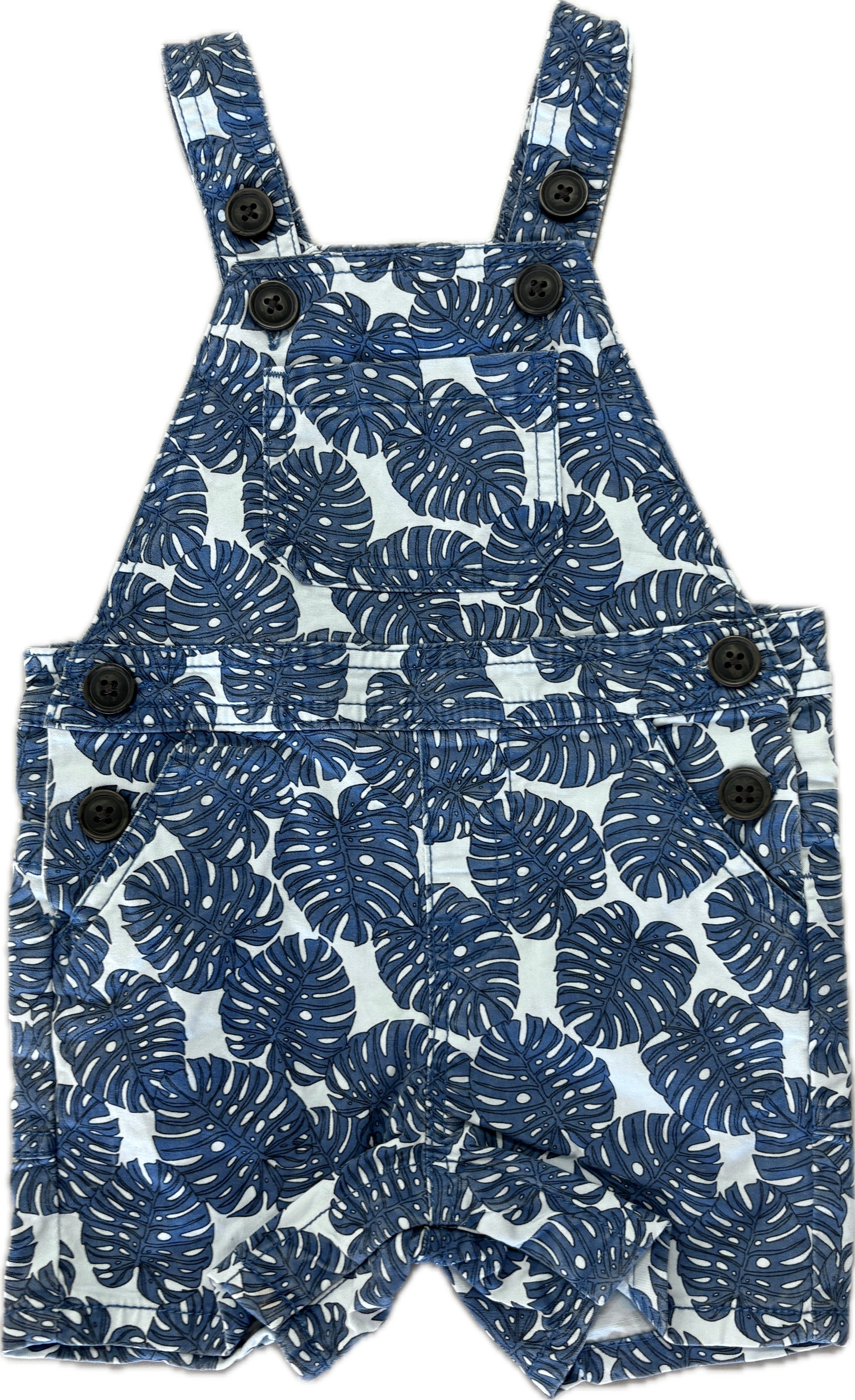 Cotton On Baby, Short Overalls w/Blue Leaf, EUC, Size 0 (6-12m)