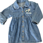 Marks Spencer, Blue White Pure Cotton Thread Rainbow Embroidered A-Line Dress, EUC, Size 1 (12-18m)