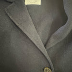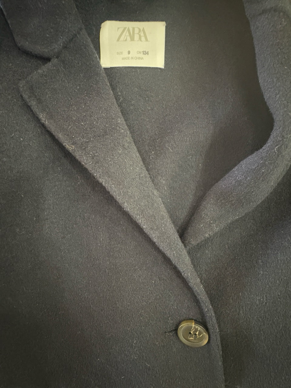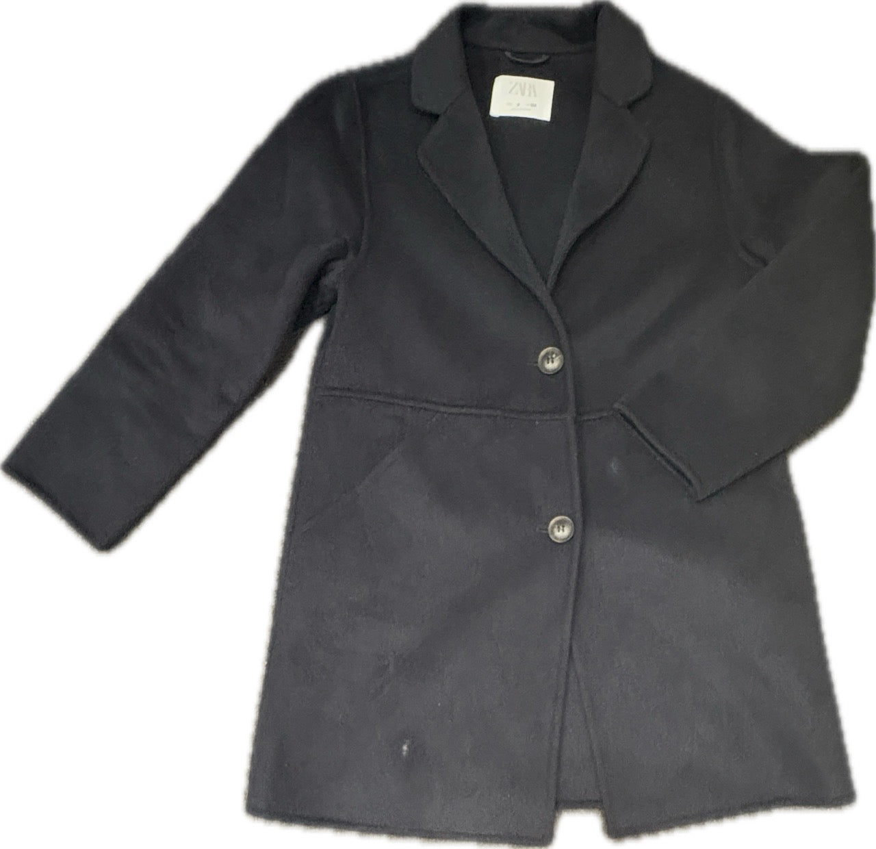 Coat with a lapel collar and long sleeves. Fastens with buttons on the front. Front pockets.